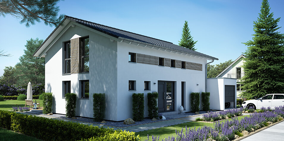 Wir sind der Auffassung, dass ein individuell geplantes Gebäude auch eine hochwertige Ausstattung benötigt. Aus diesem Grund legen wir bereits bei der Planung viel Wert auf die Details und statten Ihr Bauvorhaben beispielsweise mit edlem Parkettboden sowie hochwertigen Aluminium-Rollladen aus. Um das Raumklima positiv zu beeinflussen, verfügt jedes unserer Häuser über eine moderne Heiz- und Lüftungsanlage und lässt sich dank Smart Home Zentrale bequem steuern. Obendrein dürfen Sie auch in puncto Sicherheit auf uns bauen – denn auf Wunsch schützen wir Ihre Immobilie durch ein sicheres Alarmsystem.