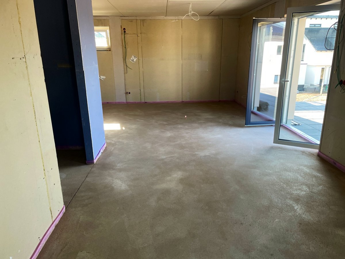 Estrich planmäßig in KW 39 eingebaut, Aufheizprogramm läuft gemäß Protokoll, Lieferung der Bemusterungsware sowie Beginn des Innenausbaus ist für KW 46 terminiert