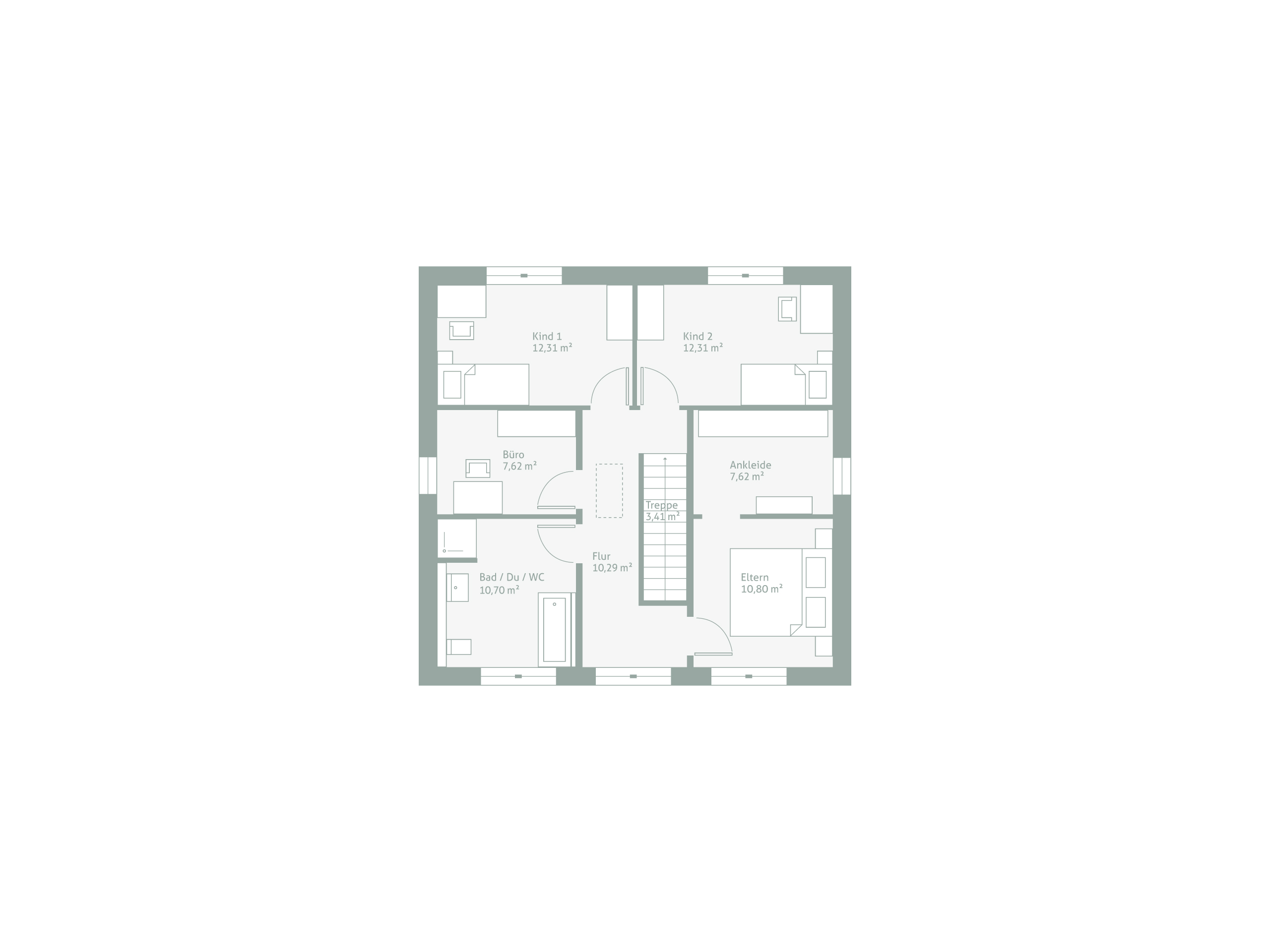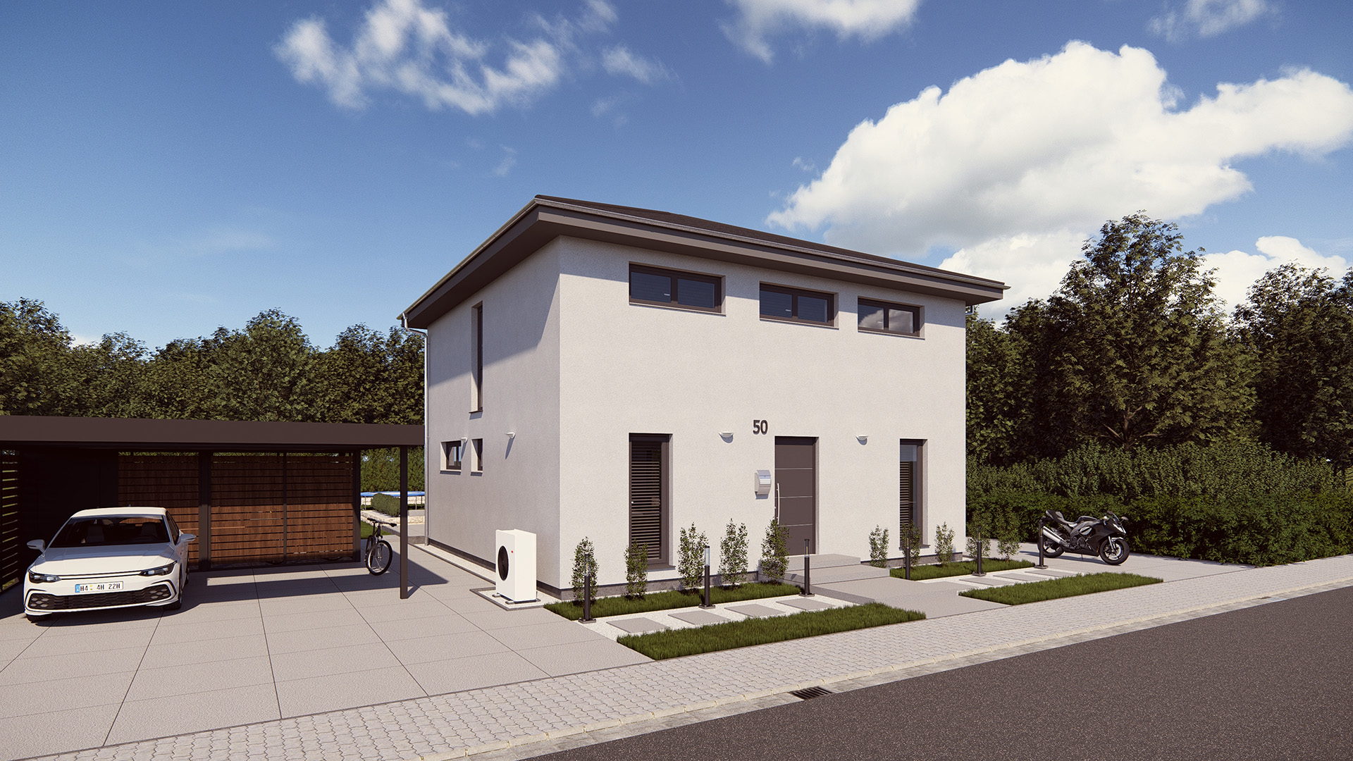 Im Stil einer modernen Stadtvilla gehalten, überzeugt das Einfamilienhaus mit seinen rund 150 m² Wohnfläche und eignet sich ideal für Familien, die das Plus an Komfort genießen möchten. Im Erdgeschoss befindet sich der offene Wohn-Ess-Kochbereich, der dank der bodentiefen Fenster nicht nur in natürlichem Tageslicht erstrahlt, sondern auch einen direkten Zugang zum Außenbereich bietet. Die großzügige Küche verfügt über eine praktische Kochinsel und ist mit einer separaten Speisekammer ausgestattet, die optimalen Platz und zahlreiche Stauraumoptionen bereithält. Neben der Diele und einem Gästebad bietet das Erdgeschoss einen Hauswirtschaftsraum (HWR), welcher als Waschraum nutzbar ist. Im Obergeschoss befinden sich zwei geräumige Schlafzimmer sowie ein weiterer Raum, der sich ideal als Büro oder Hobbyraum eignet. Ein Highlight stellen sowohl das großzügige Bad inklusive Dusche und Badewanne sowie das Elternzimmer, welches über einen eigenen Ankleidebereich verfügt, dar. Das moderne Traumhaus kann optional mit einem Keller geplant werden, der zusätzlichen Stauraum ermöglicht.