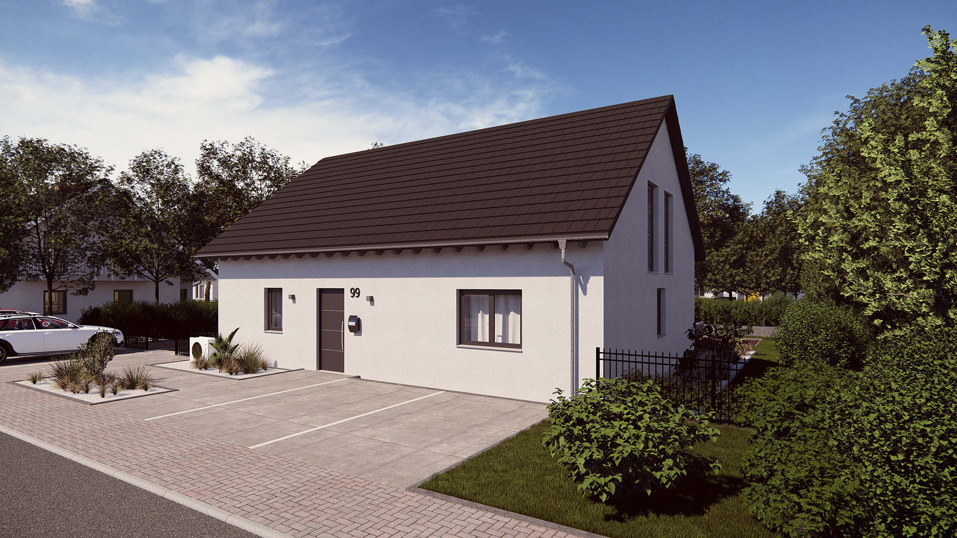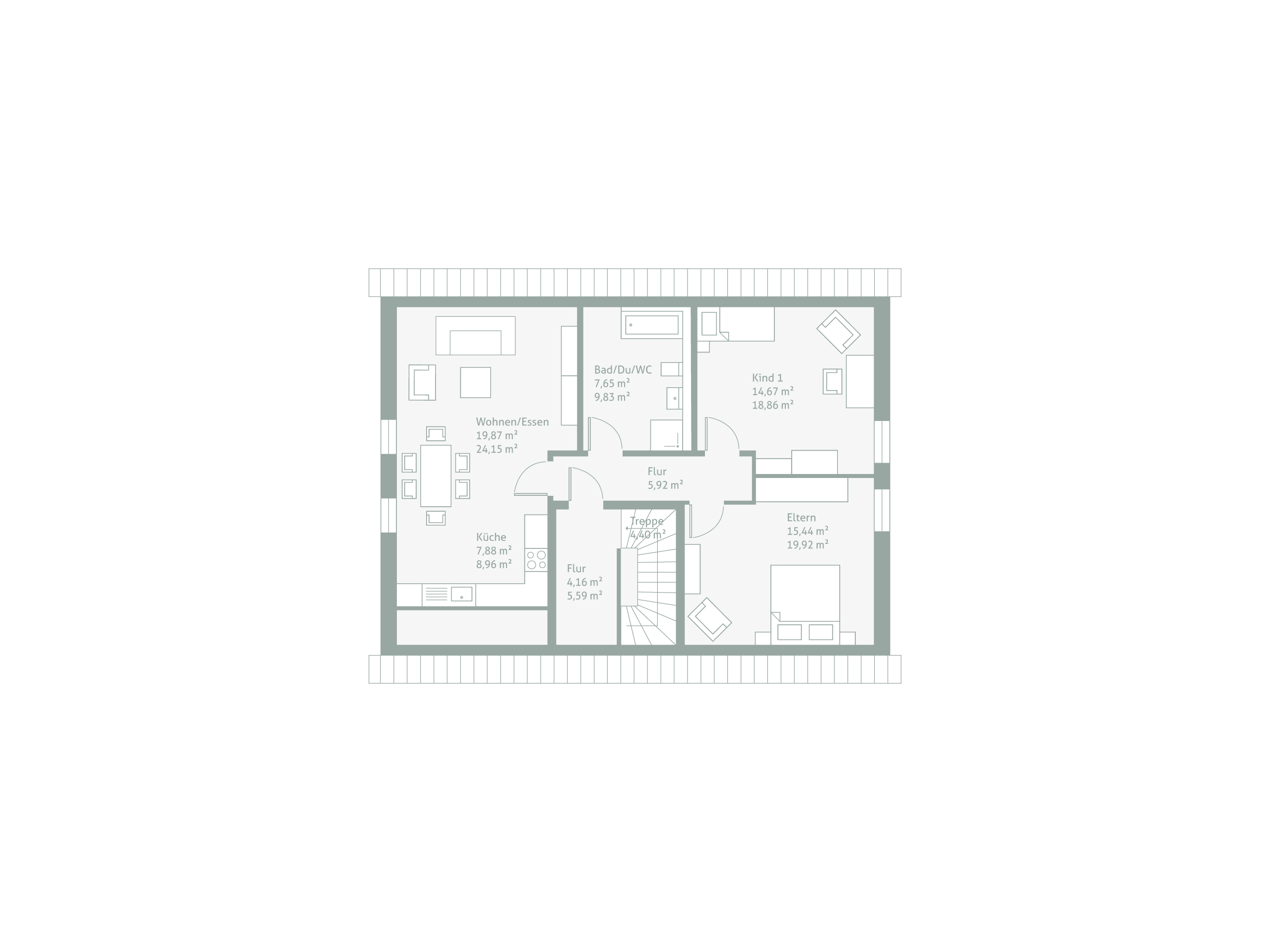 Dank der kompakten Hausaußenmaße ist das Familienhaus, bestehend aus zwei vollwertigen Wohnungen, ideal für kleinere Grundstücke. Der offene Wohn-Ess-Bereich sorgt für ausreichend Platz und über eine Terrassentür ist hier der Zugang zum Außenbereich möglich. Für beide Wohneinheiten steht ein großer Hauswirtschaftsraum zur Verfügung, der auch als Waschraum nutzbar ist. Weiteres Highlight: Beide Wohneinheiten verfügen jeweils über ein großräumiges Bad inklusive Dusche und Badewanne. Ein zusätzlicher Keller könnte geräumige Abstellmöglichkeiten bieten.